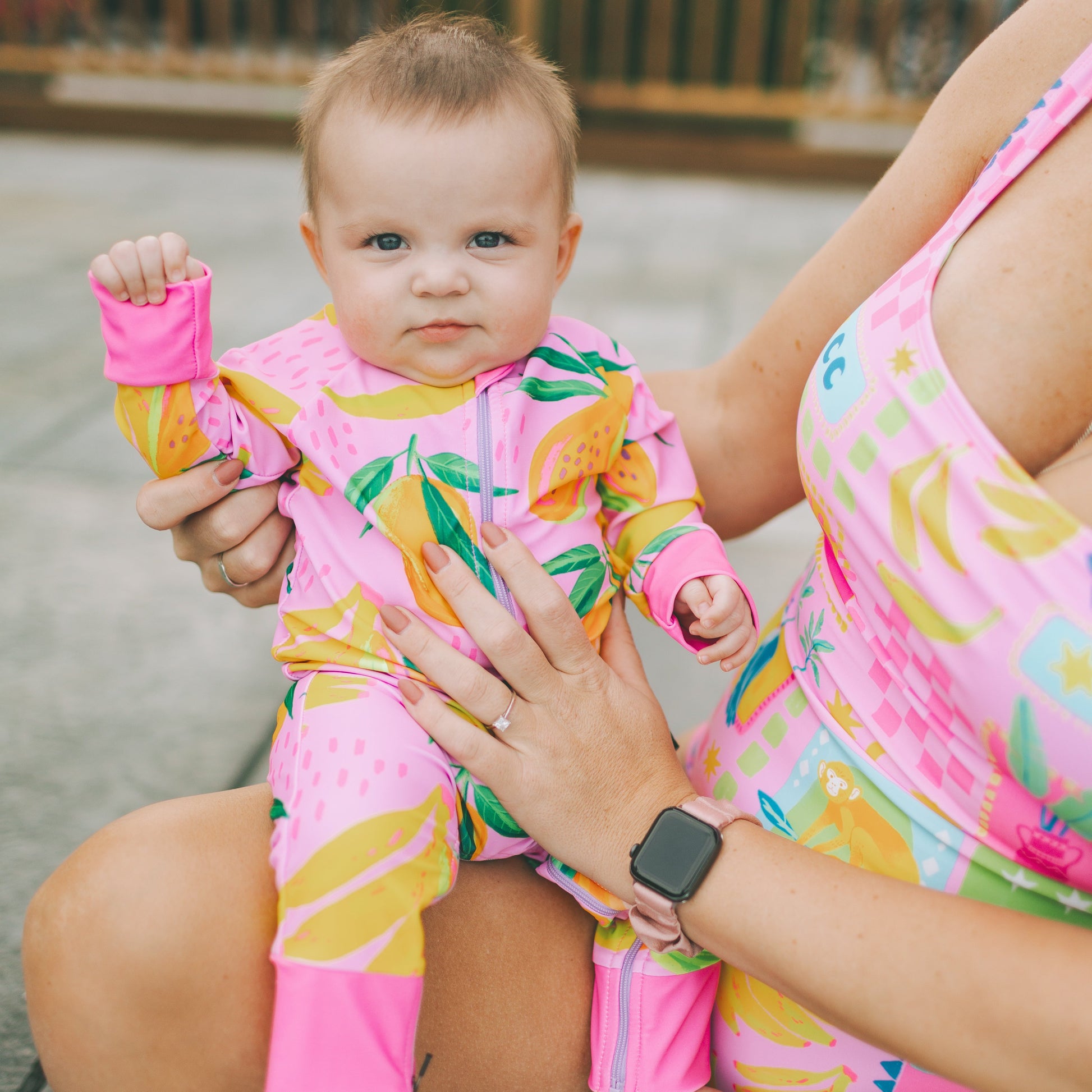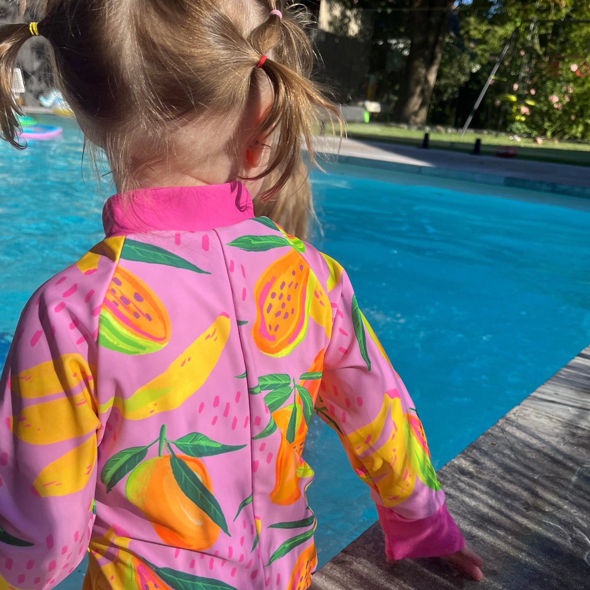 Protect your little one from the sun's harsh rays with our full-coverage, UPF 50+ sun-safe swimwear. Our swimsuits provide sun protection from wrists to ankles, ensuring maximum coverage. For added convenience, the swimsuits include a zipper around the legs making nappy changes or bathroom trips quick and easy!